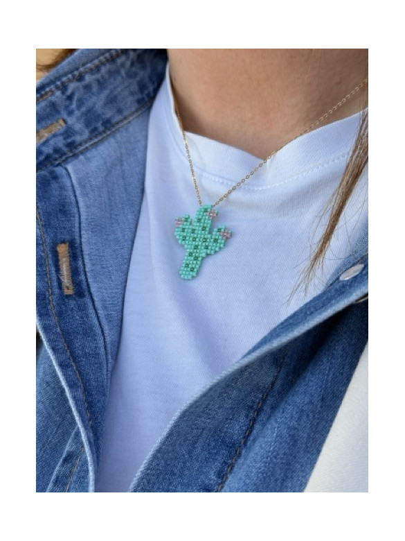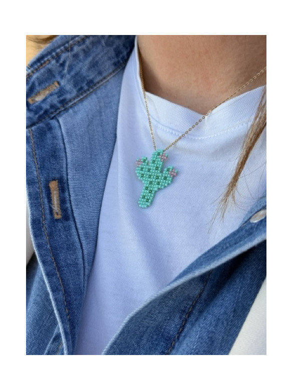 Collana catenina in acciaio 38 cm più 5 cm regolabile pendente in perline miyuki con cactus